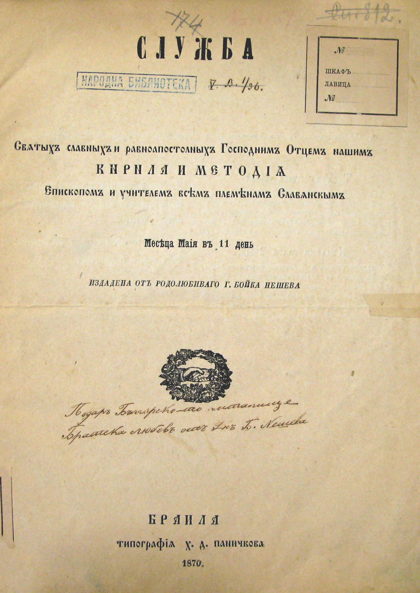 Служба Святих славних и равноапостолних господним отцем нашим Кирила и Методия, епископом и учителем всем племенам славянским, месеца майя в 11 ден