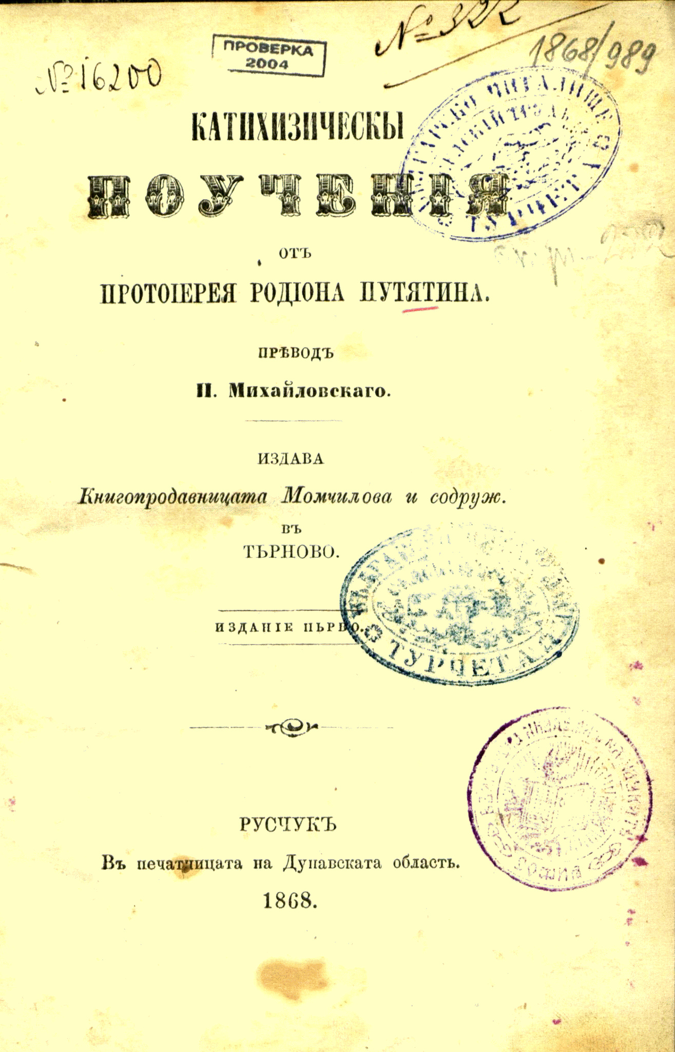 списано на славянский язик от преосвященаго Стефана Яворски, митрополита Рязанскаго и Мурумскаго; преведено же от славенски на български и издадено от Стояна Н. Стамболиева, казанлъчанина